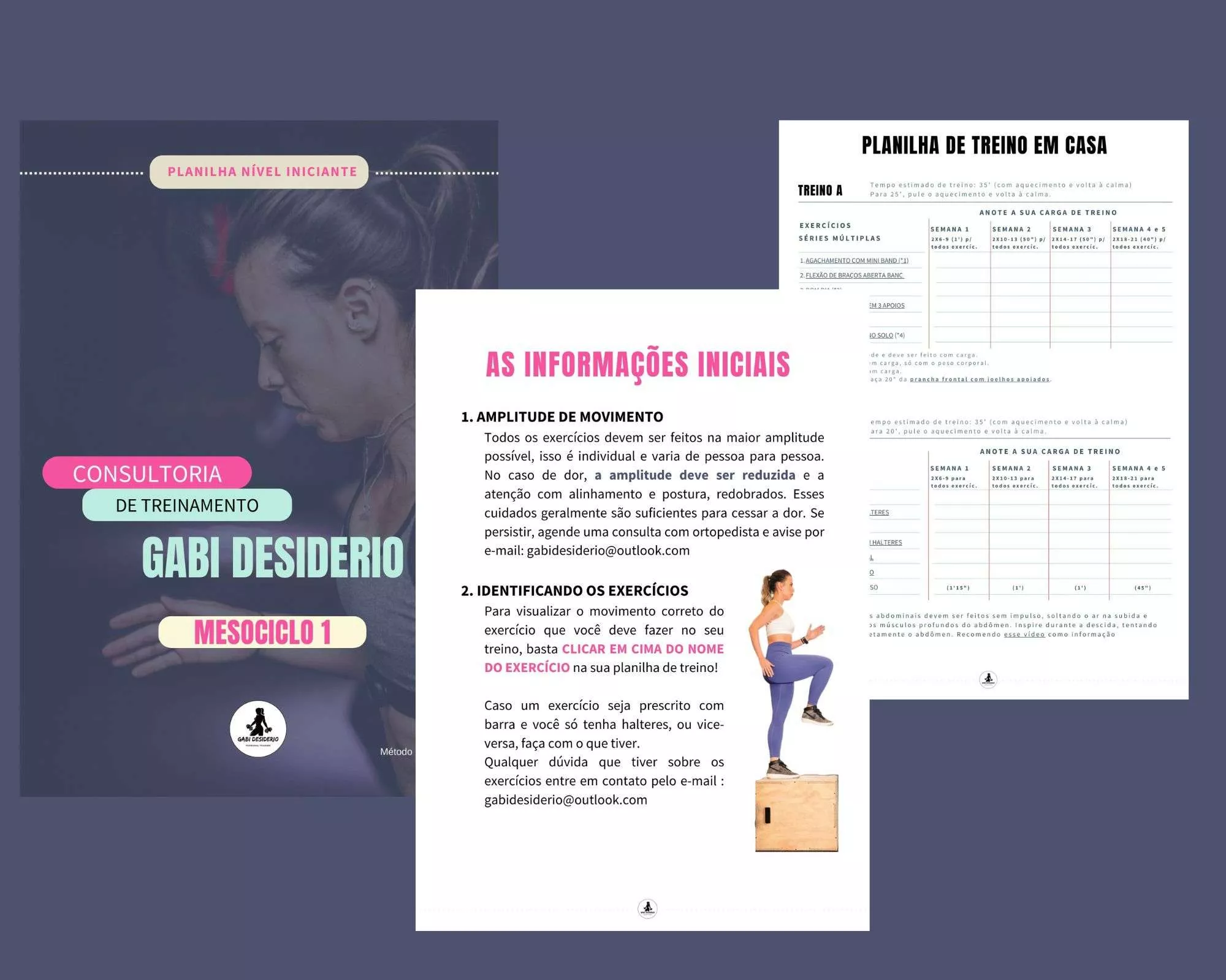 A Consultoria Gabi Desiderio está estruturada na Metodologia Maíra Tavares e foi desenvolvida para mulheres que querem ter uma rotina de treinos que se encaixem na sua rotina de vida.